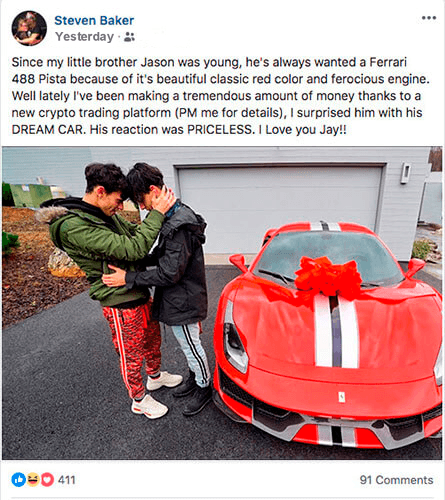 Ik deel dit omdat ik ook honderden e-mails heb ontvangen van mensen die me voor het delen van dit geheim hebben bedankt. Mijn favoriete e-mail is van een jongeman die van het geld dat hij met Bitcoin Evolution heeft verdiend de droomauto, een Ferrari 488 Pista, voor zijn jongere broer heeft gekocht. Dit platform maakt het leven van iedereen ter wereld echt een beetje beter."